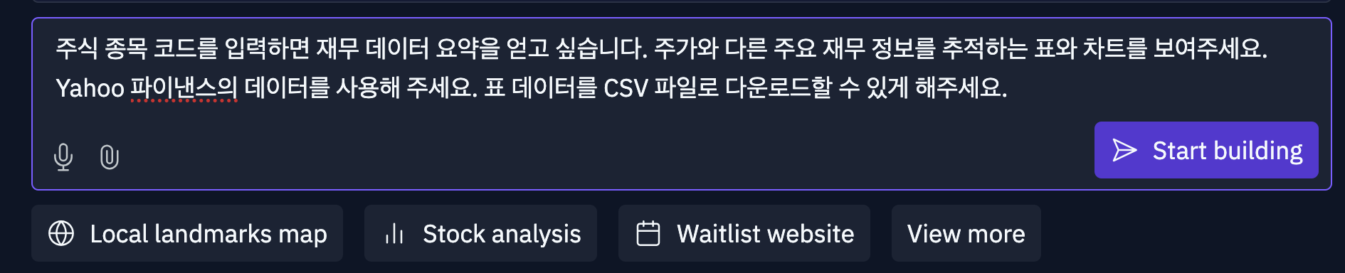 아래와 같은 프롬프트를 입력하여 Replit Agent에게 코드를 생성해달라고 요청할 수 있습니다.